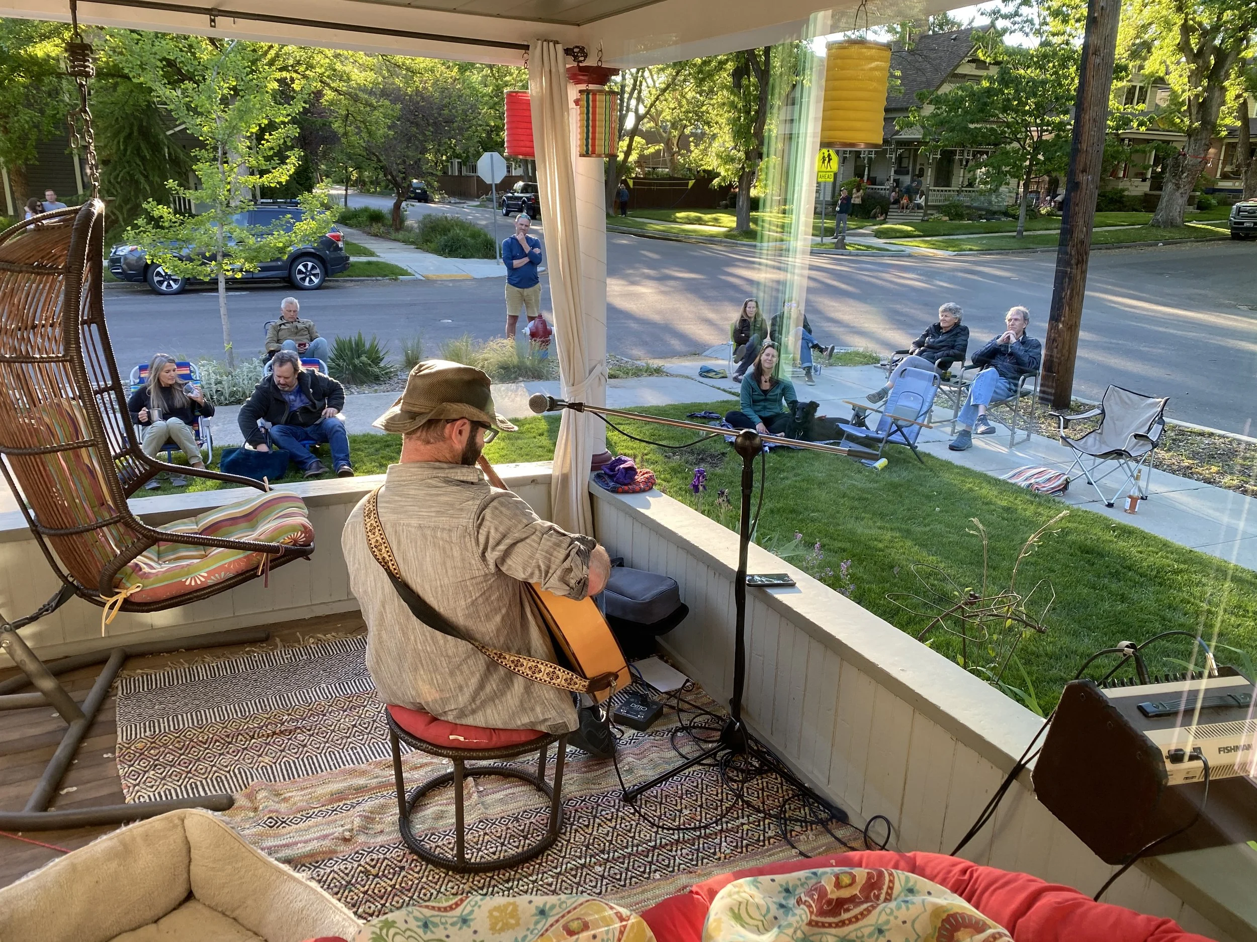 Boise musician Dan Costello performs a Rosalie Sorrels cover from the front porch of the house Sorrels grew up in.