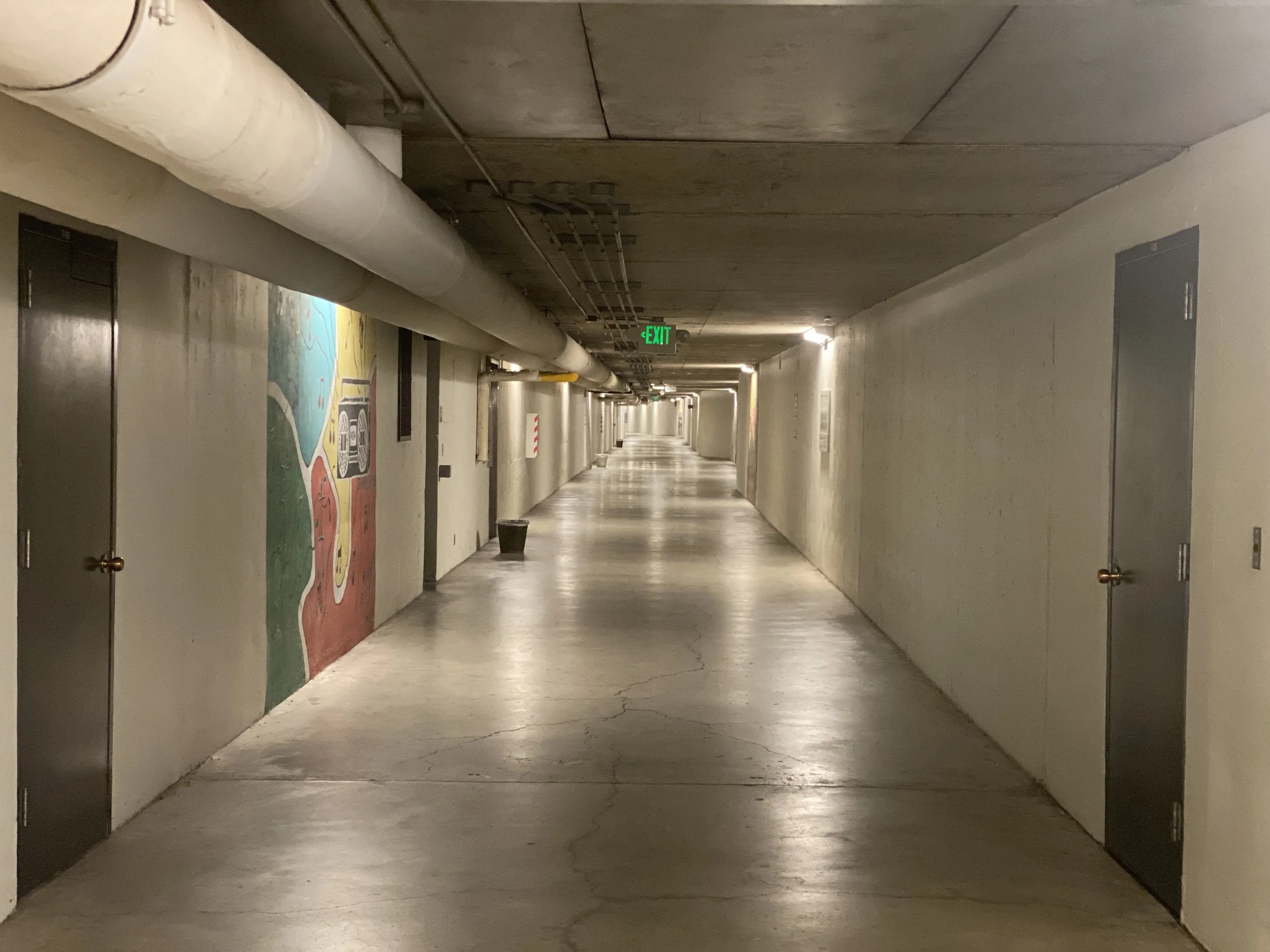 Footsteps on concrete in a tunnel that connects the Idaho state capital with nearby administrative offices.